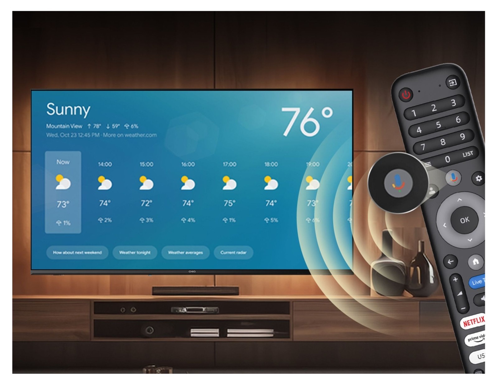 Sprachinteraktion, Netflix, Internetzugang, Herunterladbare Apps, Android TV